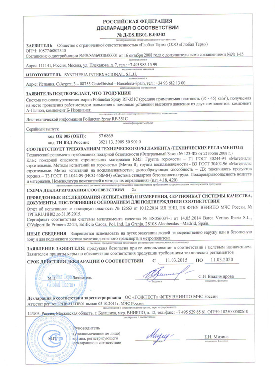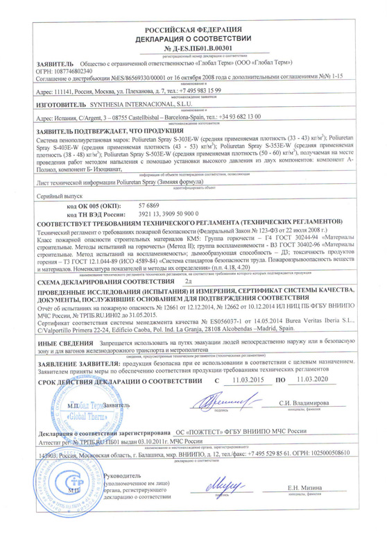 Пенополиуретан (ППУ) является самозатухающим и трудновоспламеняемым материалом. Он не поддерживает горение (Г2) и имеет класс пожарной опасности КМ3 - практически не выделяет вредных веществ.