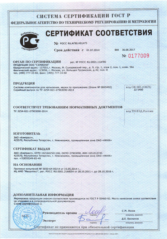 высококачественных материалов, производимых ведущими мировыми химическими концернами.